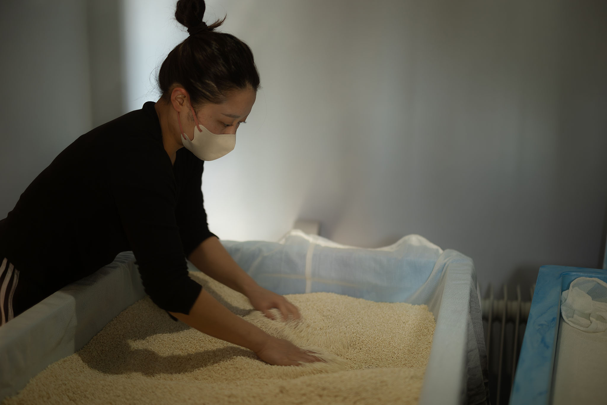 「福島に恩返しをしたい」という想いは、彼を醸造の世界へと突き動かしました。大学卒業後、一度は企業へ就職するも、酒造りへの道を諦めきれず退職。宮城県閖上の佐々木酒造店で修業を積み、その後、南相馬市の「haccoba -Craft Sake Brewery-」の初代醸造責任者を経て、自身の理想をかたちにするため『ぷくぷく醸造』を立ち上げました。『ぷくぷく醸造』の最大の特徴は、「全量浜通り産の米」を使用することにあります。震災後の避難指示解除から時間が経過しても、依然として低い水準にある営農再開率。『ぷくぷく醸造』は、地元の米を付加価値の高いお酒に変えることで「お酒を通して、福島の沿岸に田畑を増やす」ことを目指しています。